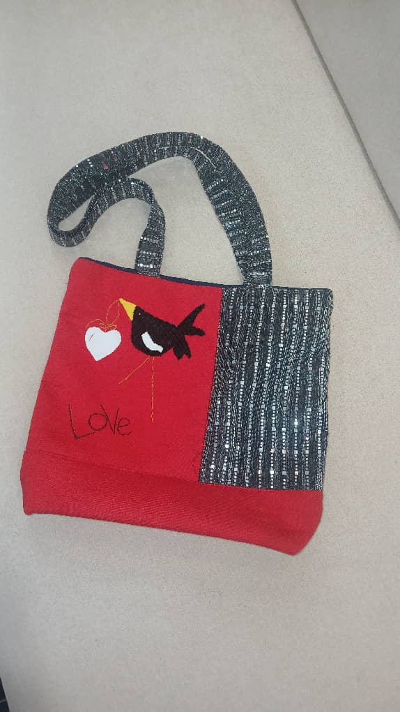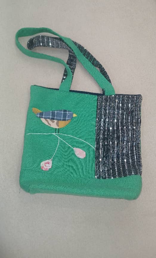 کیف توت بگ گودی با طرح گنجشک که سبک ژاپنی دوزی دوخته شده دست دوزه