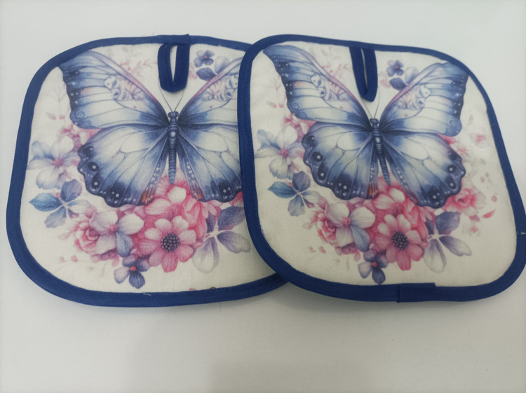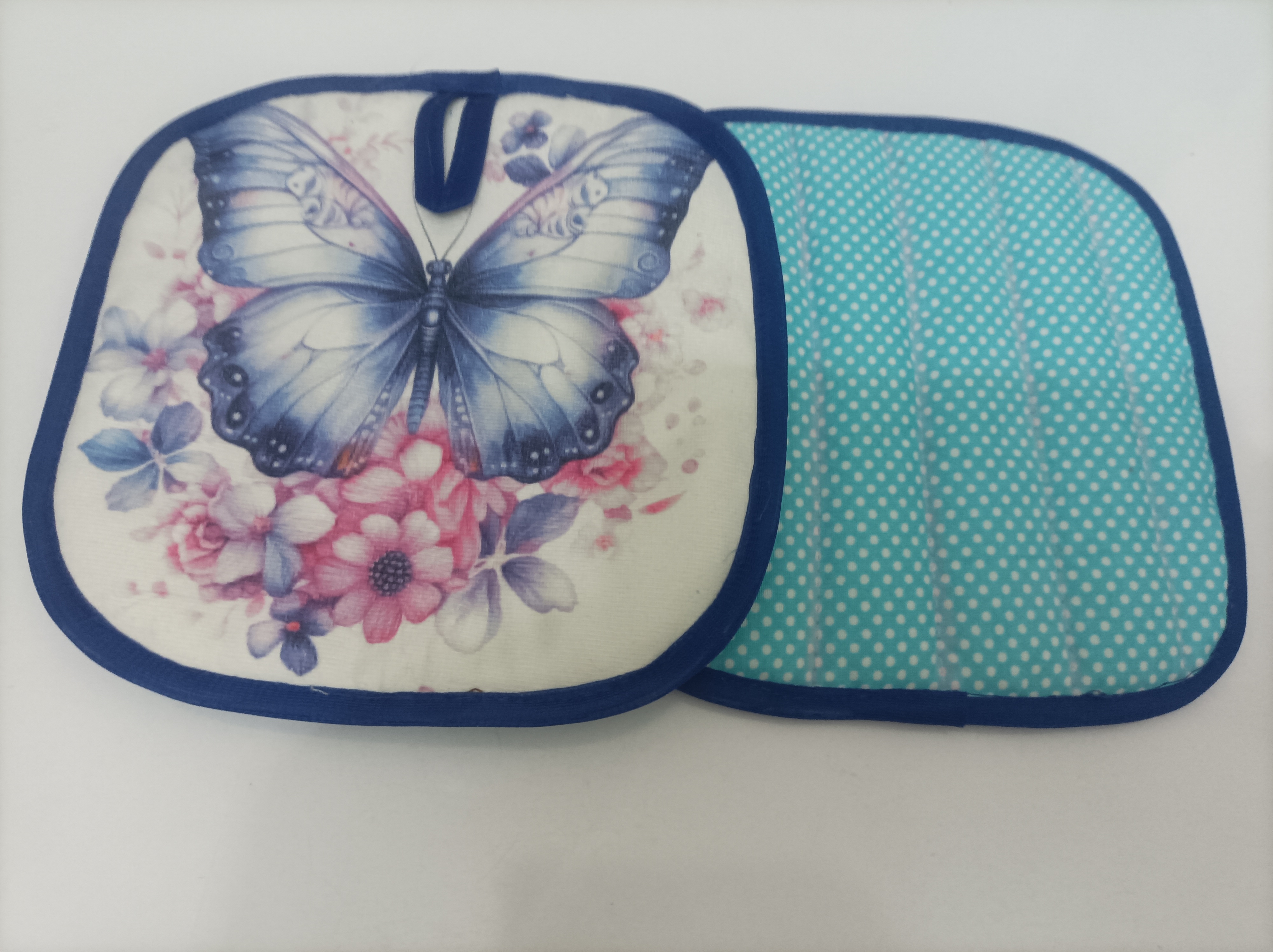 دستگیره پنلی پروانه ای آبی با گل صورتی سایز18در18جنس مخمل