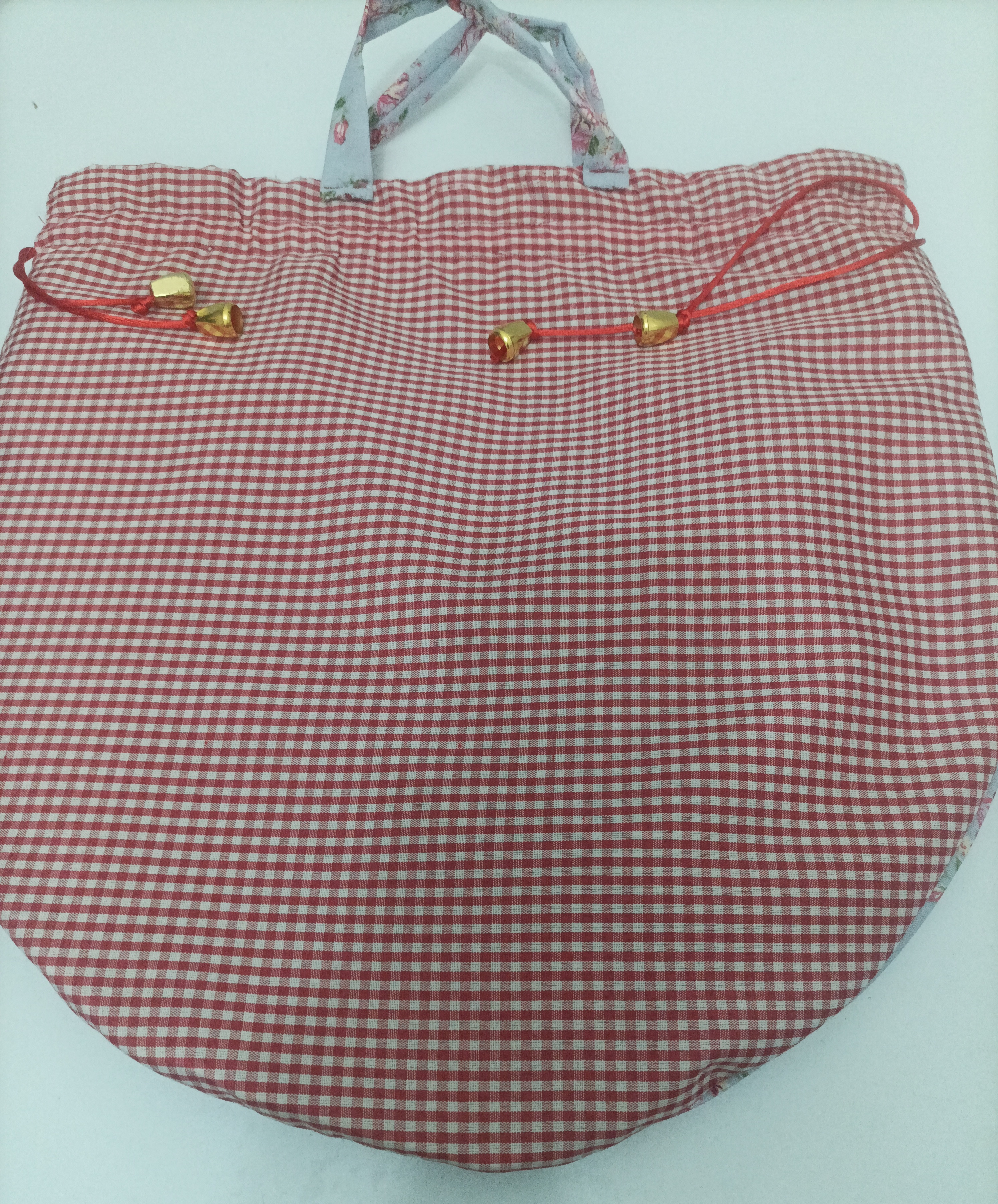کیسه سبزی در دو طرح گلدارمدادی قرمز روی پارچه وطرح چهارخونه قرمز پشت پارچه داخل هم از پارچه برزنت ضد آب به جای مشما استفاده کردم که مقاومت بیشتر وکیفیت کار بالا بره وزمان بیشتری از محصول استفاده کنید استر هم از تترون نخ سفید استفاده کردم که نمگیر باشه