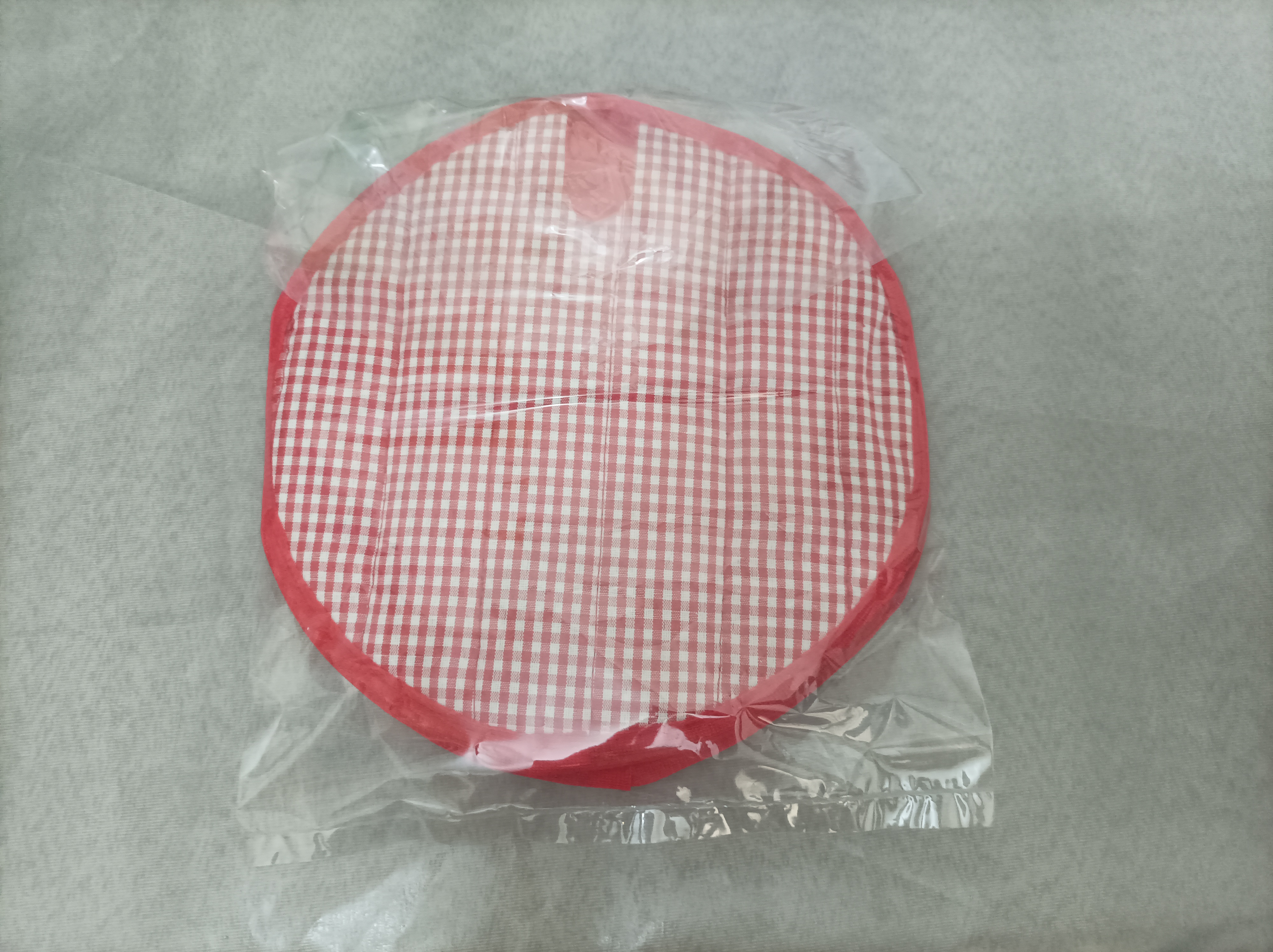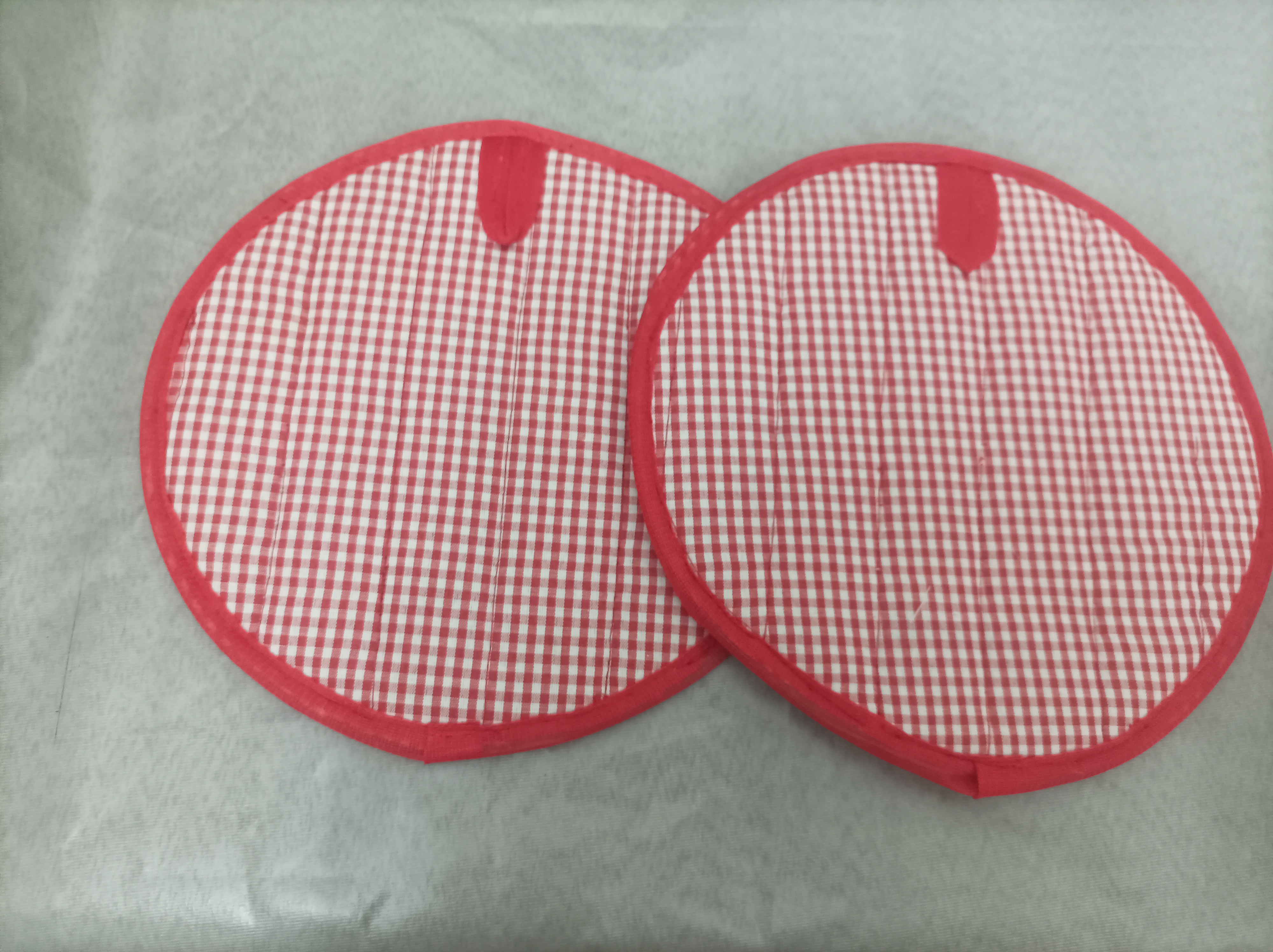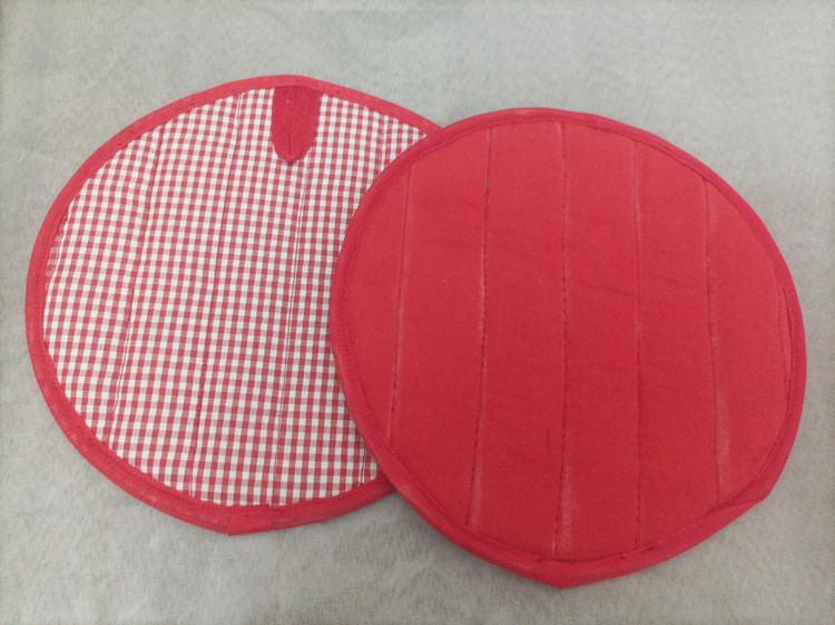 دستگیره دایره ای به قطره 19پشت رو پارچه متفاوت رویه دستگیره پارچه تترون نخ چهارخونه قرمز وسفید پشت دستگیره پارچه تترون نخ ساده قرمز
