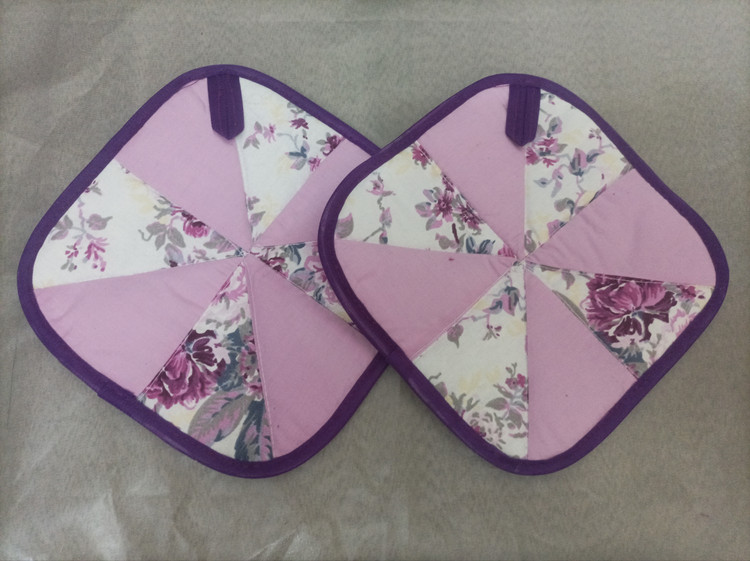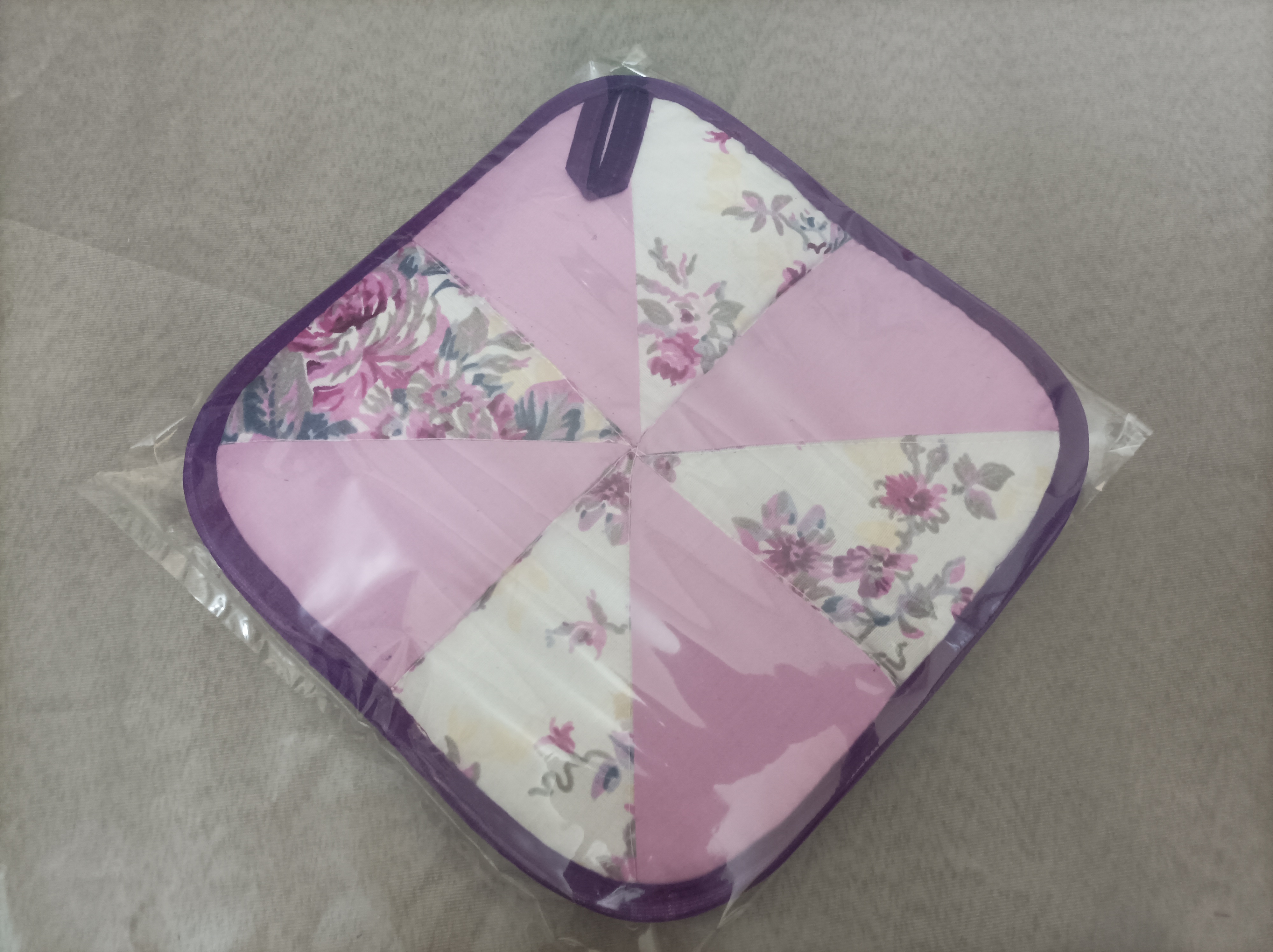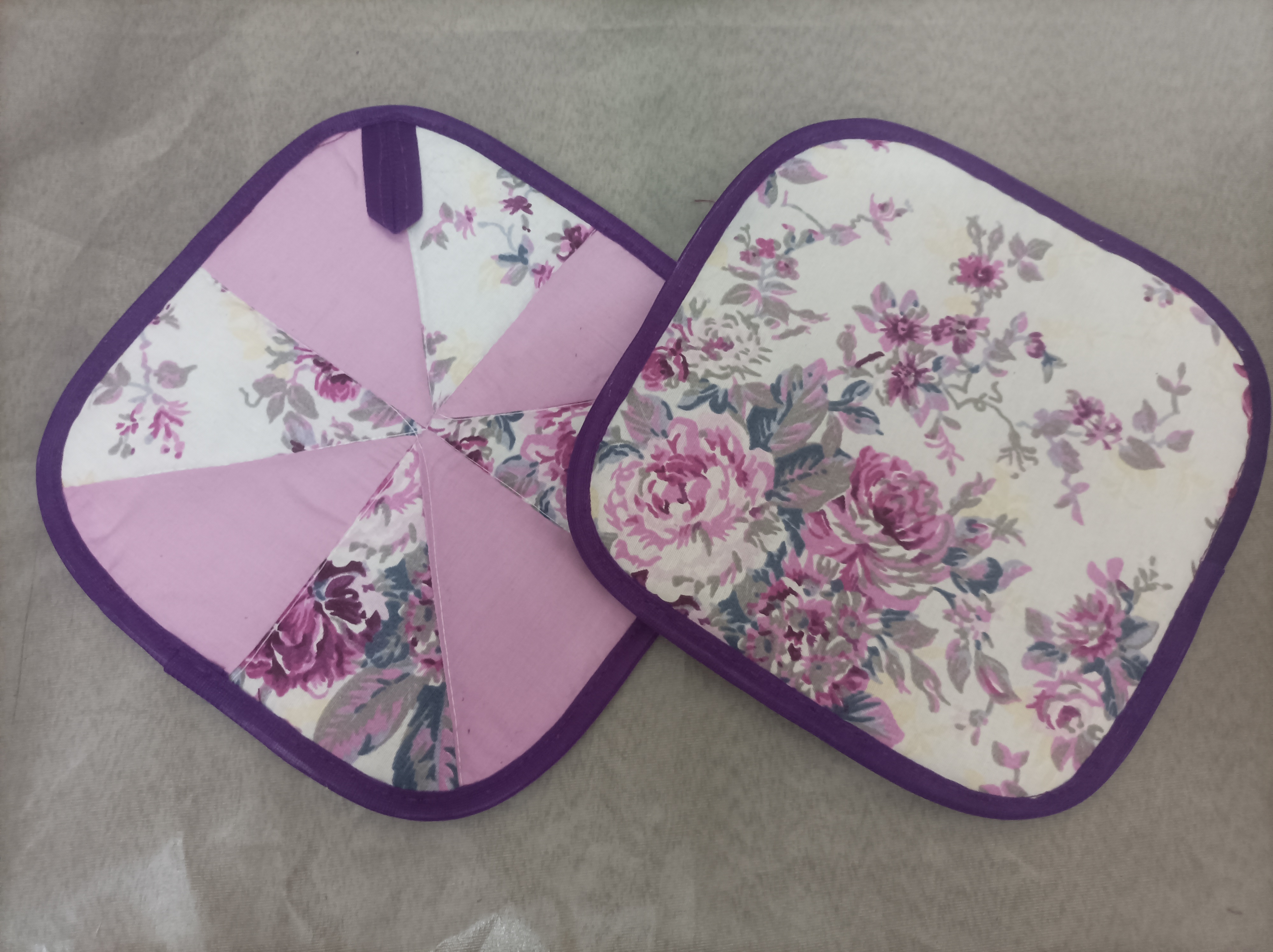 دستگیره فرفری پارچه تترون نخ گلدار بنفش وسفید وپارچه تترون نخ بنفش ساده ابعاد